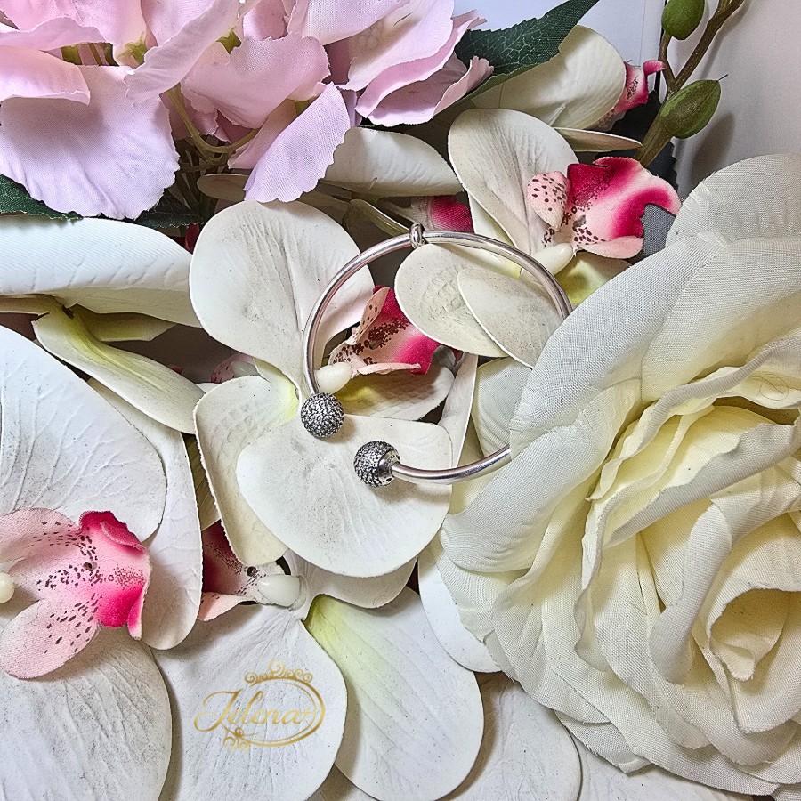 Predivna srebrna Pandorina (ale) narukvica alka sa dve kugle na kojima su cirkoni. Pandora.