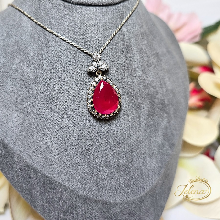 Srebrna ogrlica sa rubinom i cirkonima