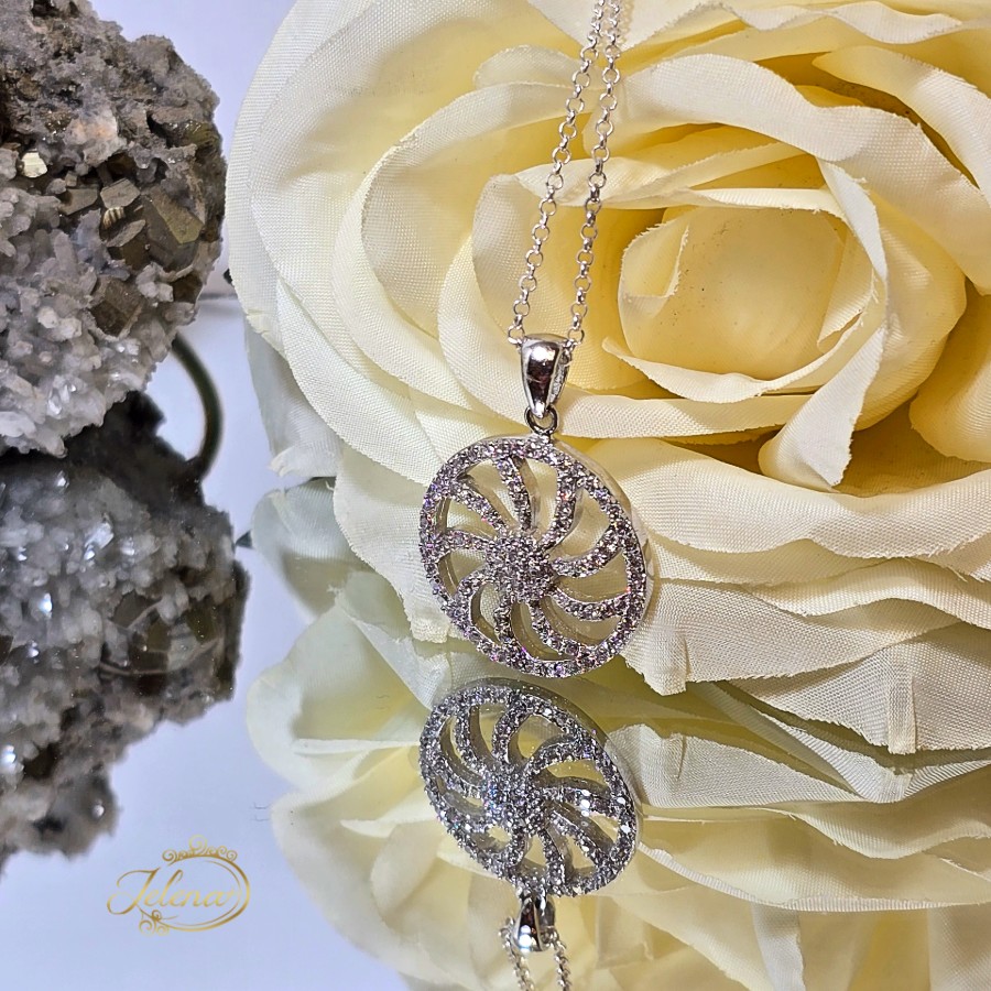 Elegantna srebrna ogrlica na lancu je privezak veličine 3,5 cm sa cirkonima.