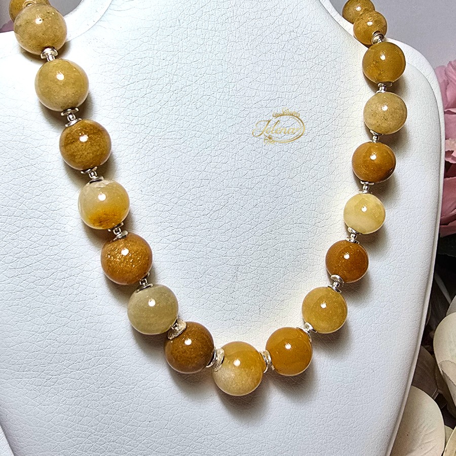 Predivna ogrlica sastavljena od kugli žada i srebrnih elemenata.