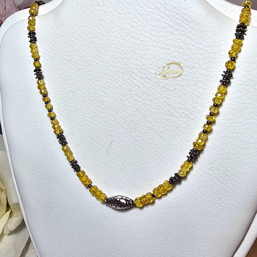 Predivna ogrlica sastavljena od sitnih brušenih komada citrina i srebrnih elemenata.