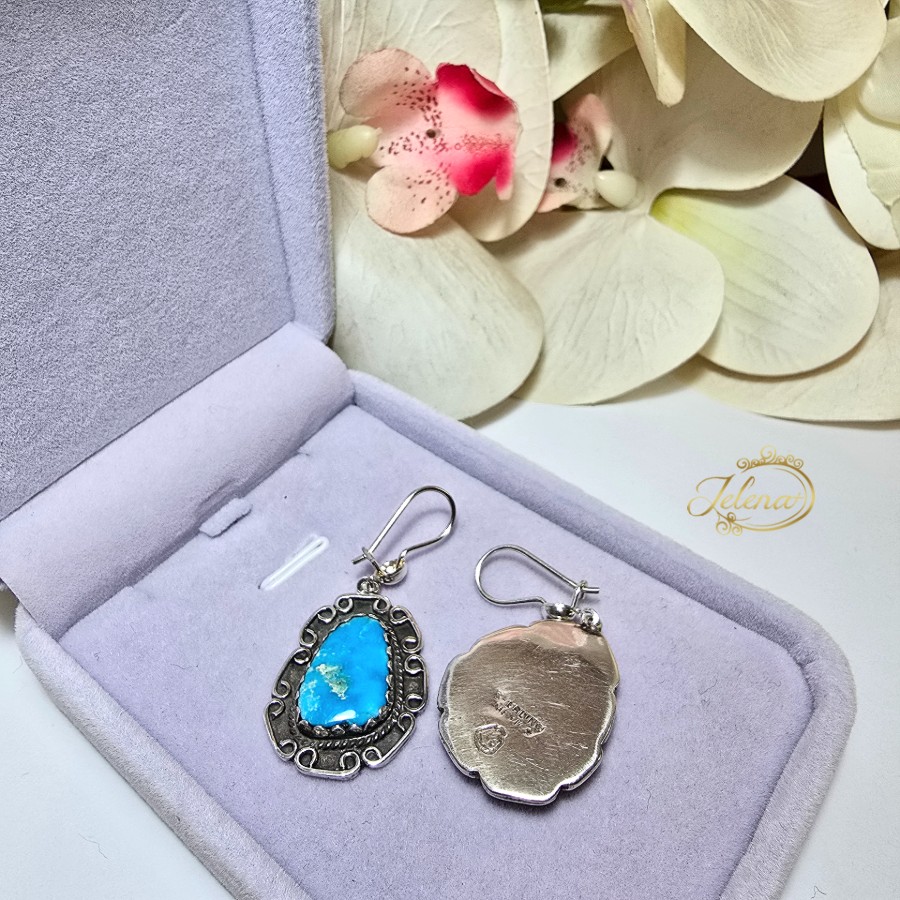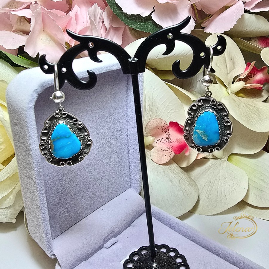 Predivne srebrne viseće minđuše sa krupnim tirkizima.