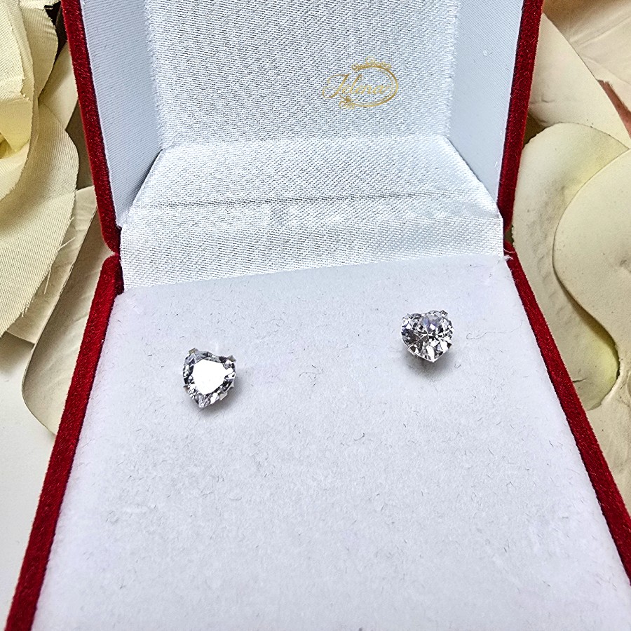 Nežne srebrne minđuše sa cirkonima u obliku srca.
