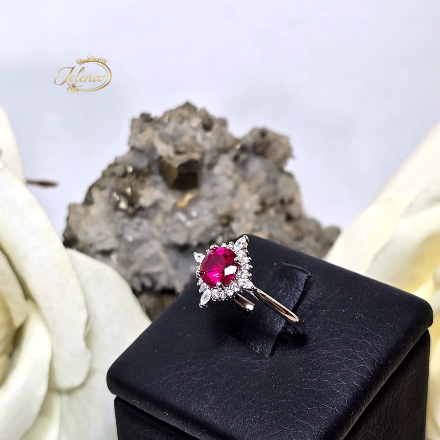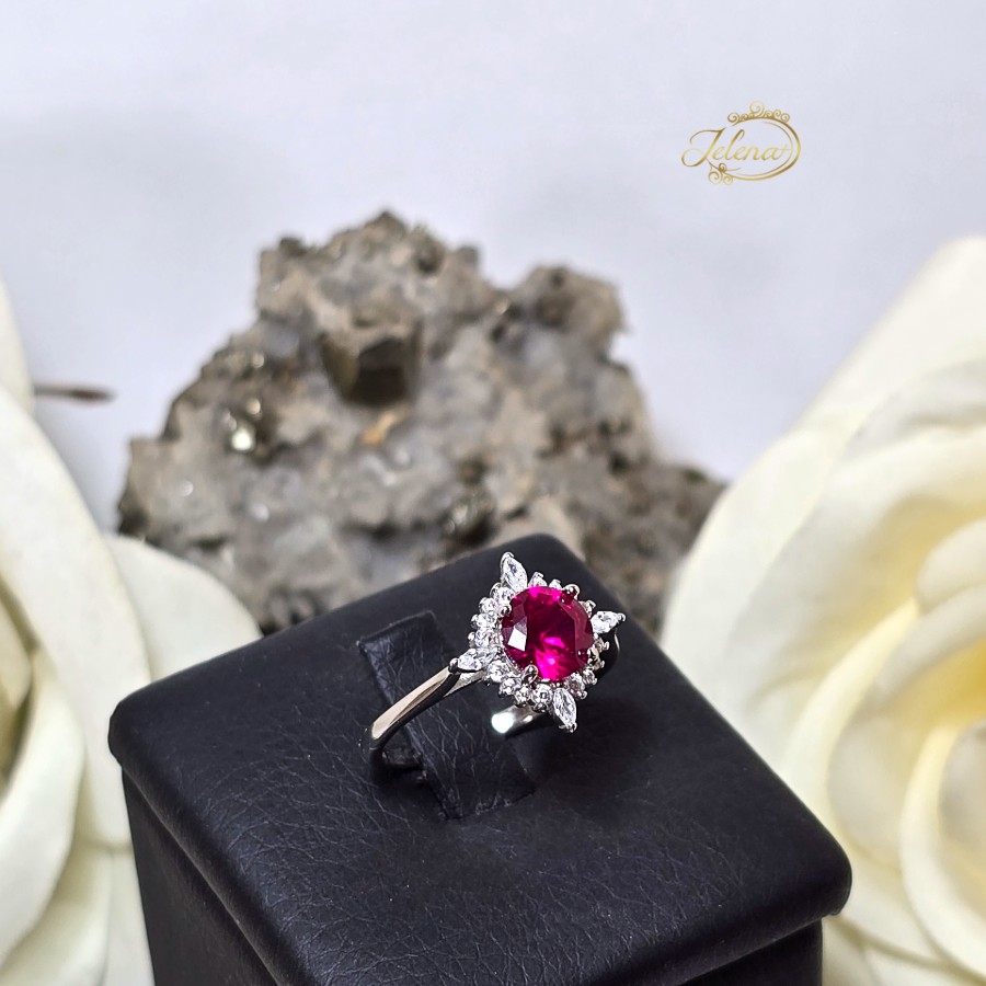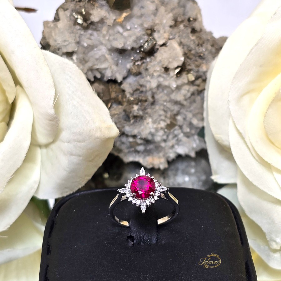 Srebrni prsten sa rubinom i cirkonima