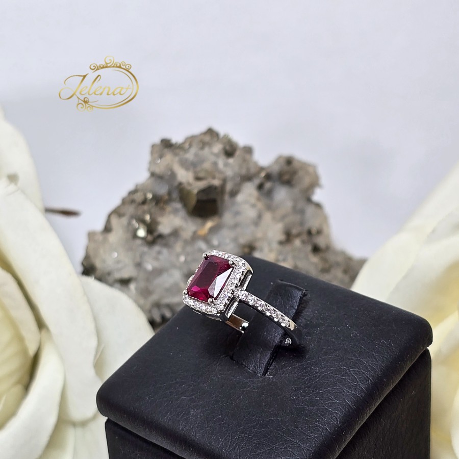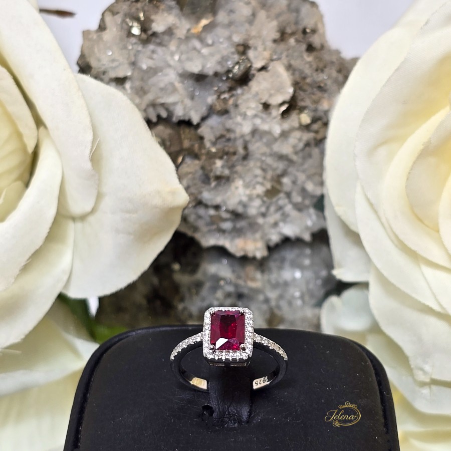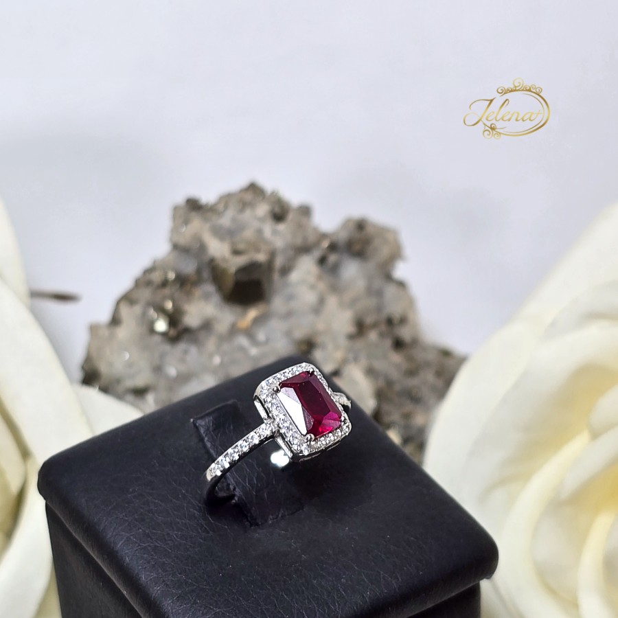 Srebrni prsten sa rubinom i cirkonima