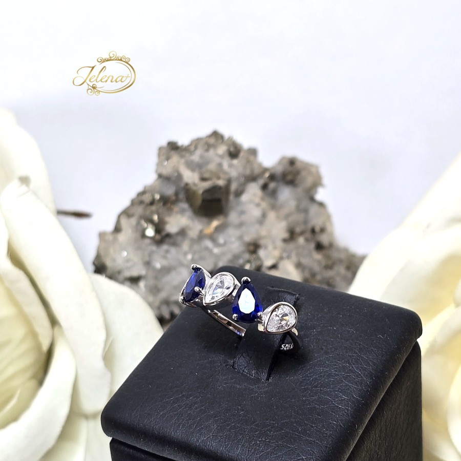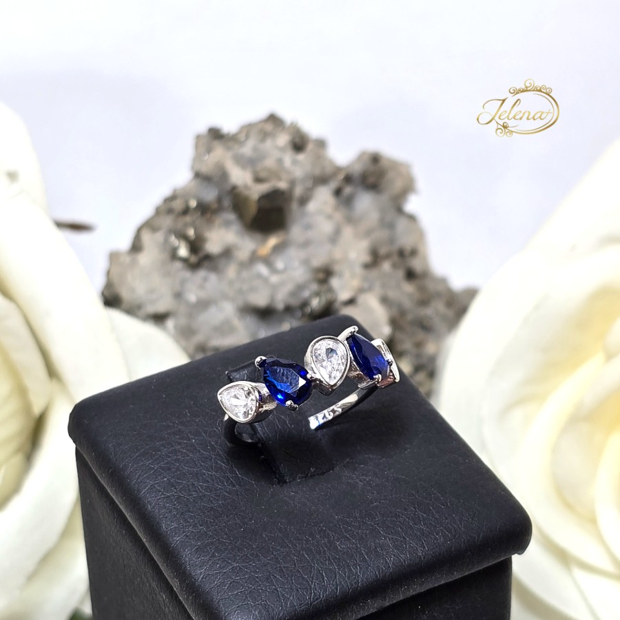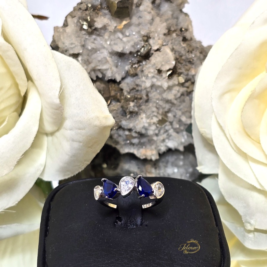 Lep srebrni prsten sa plavim kristalima i cirkonima.